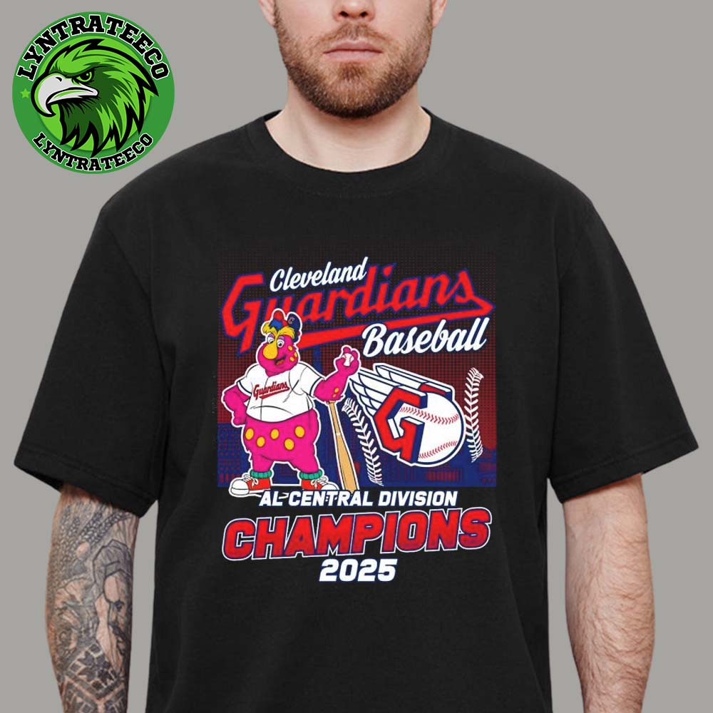 Lyntrateeco: About Celebrate Cleveland Guardians Baseball 2025 MLB AL Central Division Champions Slider Mascot Unisex T-Shirt: