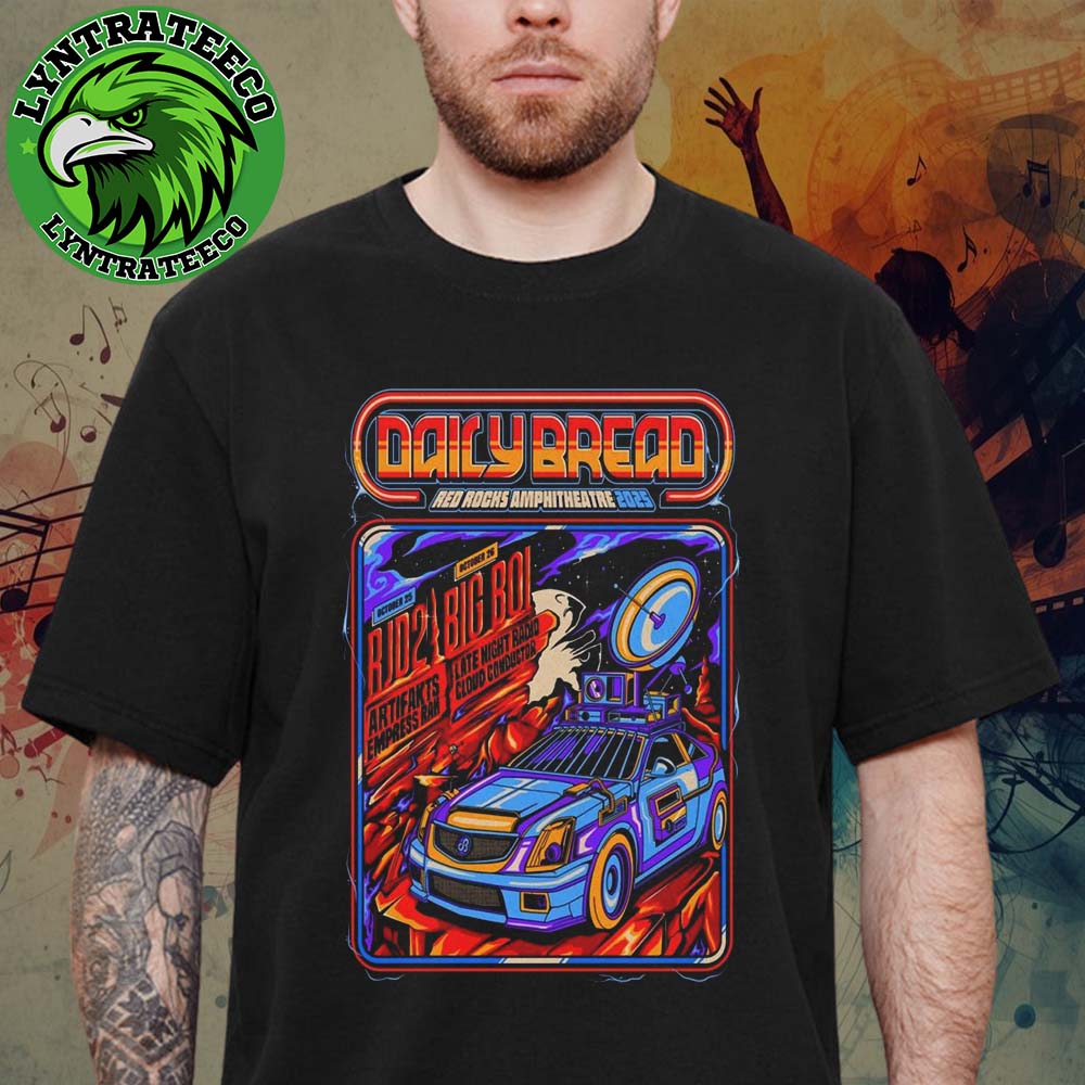 Commemorate an unforgettable music experience with the Daily Bread At Red Rocks Amphitheatre In Morrison CO On October 25 And 26 2025 Unisex T-Shirt. This exclusive shirt celebrates the highly anticipated performance at one of the most iconic venues in the world — Red Rocks Amphitheatre. Made from soft, high-quality cotton, it ensures ultimate comfort while offering a stylish, unisex fit that flatters every body type. The eye-catching design features tour-inspired graphics that reflect the electric energy and creative vibe of Daily Bread’s live shows. It’s the perfect way to relive the moment or show off your excitement for the upcoming concert.