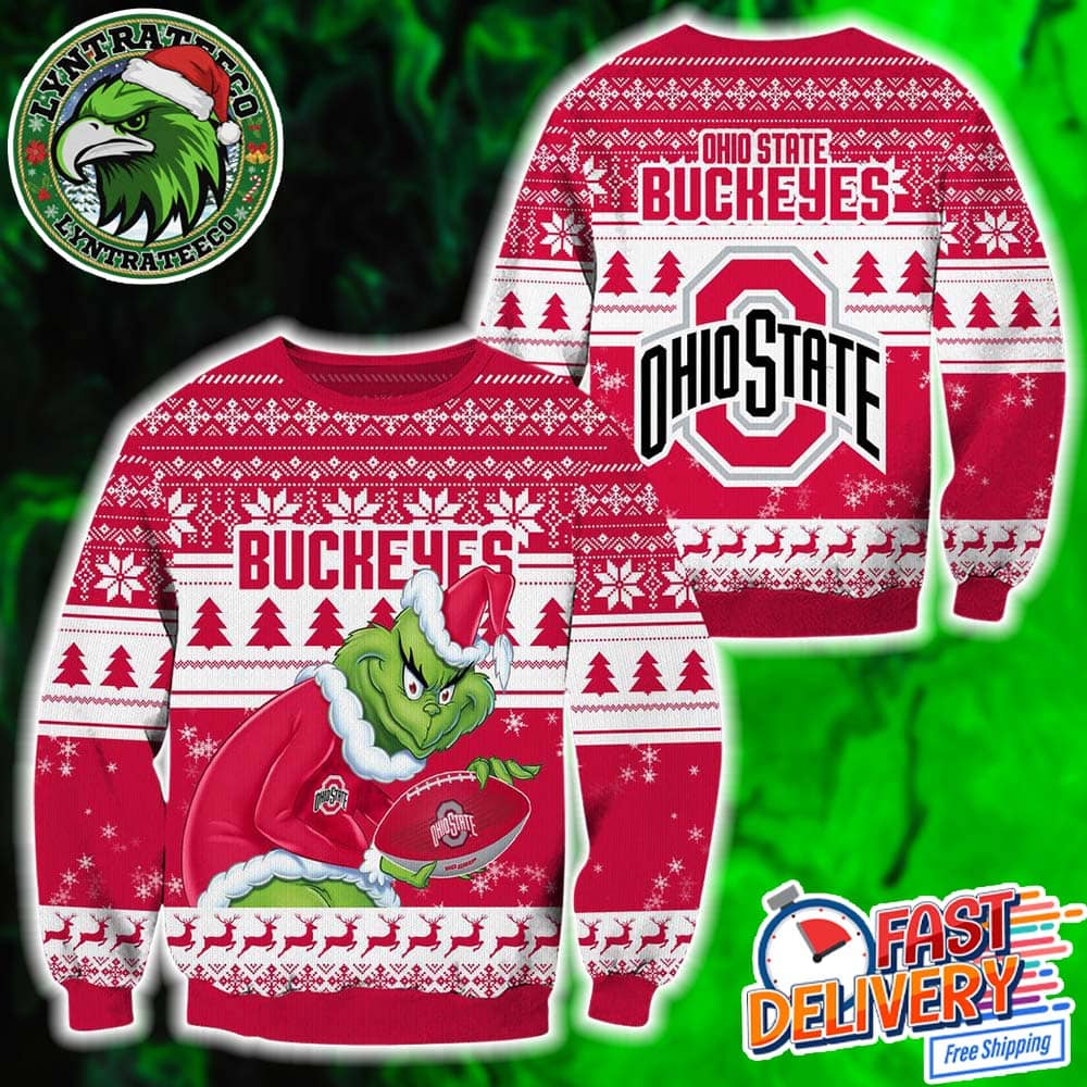 NCAA Ohio State Buckeyes x Grinch Football Gift For Fan 2025 Knitted Ugly Christmas Sweater Features: