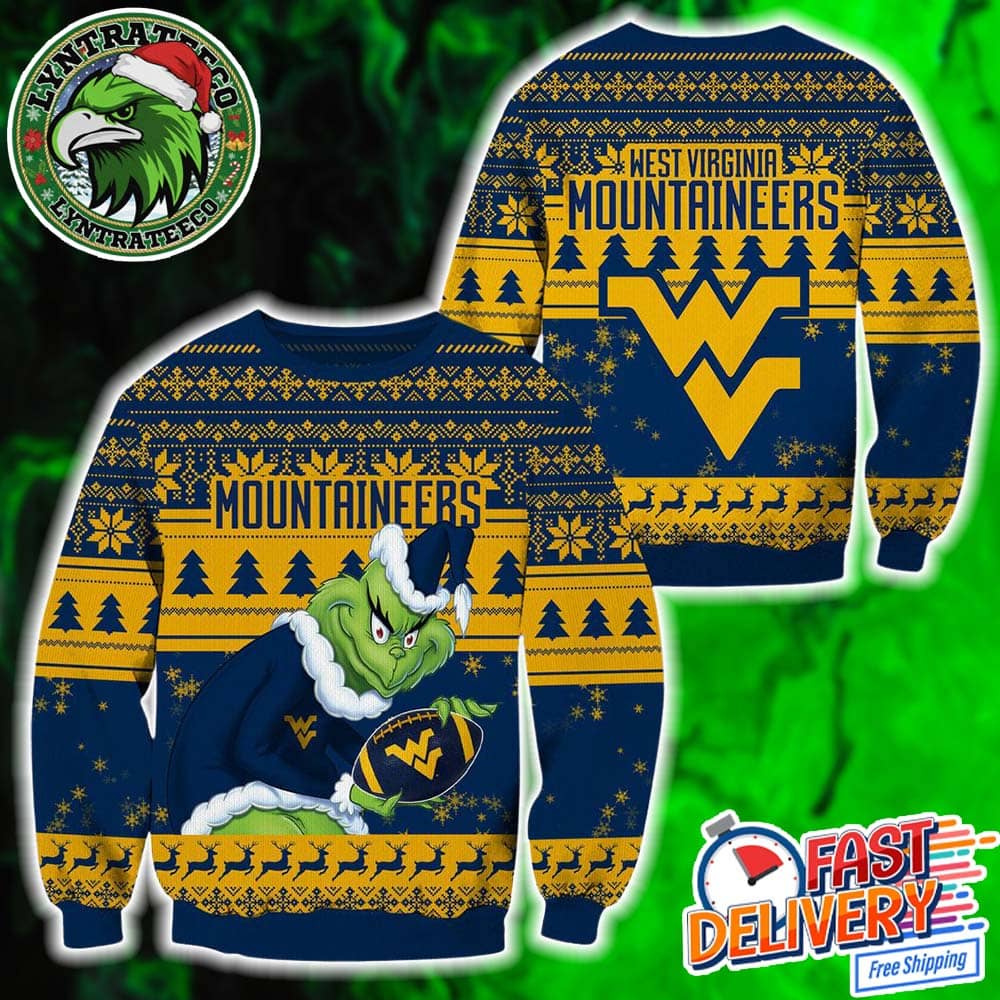 NCAA West Virginia Mountaineers x Grinch Football Personalized Christmas 2025 Holiday Ugly Christmas Sweater