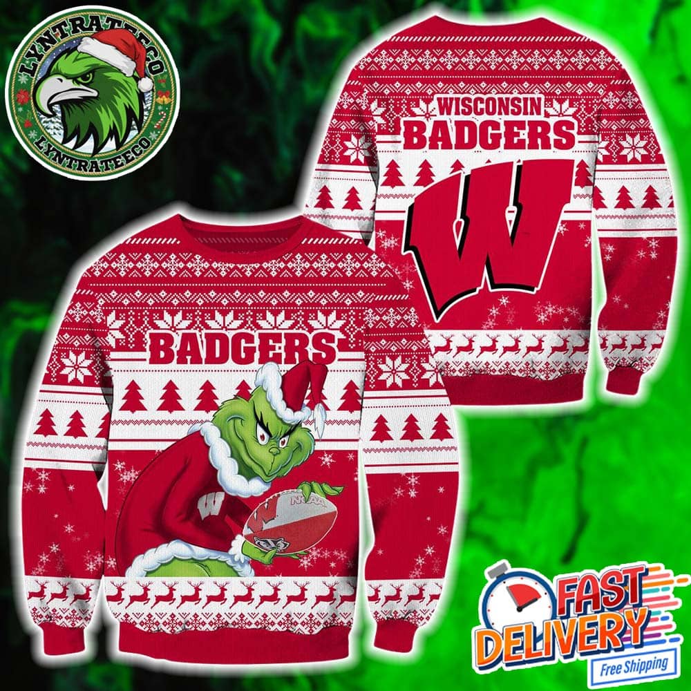 About NCAA Wisconsin Badgers x Grinch Football Personalized Christmas 2025 Holiday Ugly Christmas Sweater: