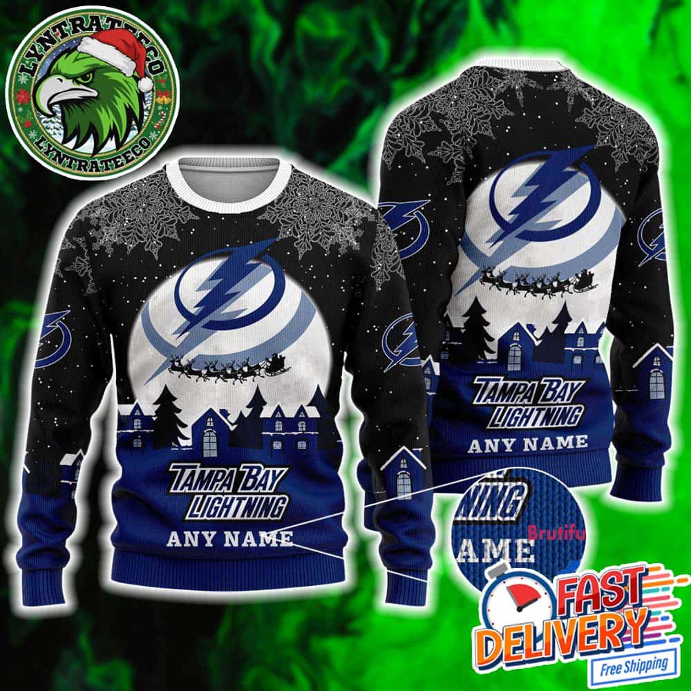 NHL Tampa Bay Lightning Custome Name And Number Hockey Knitted Ugly Christmas Sweater Features: