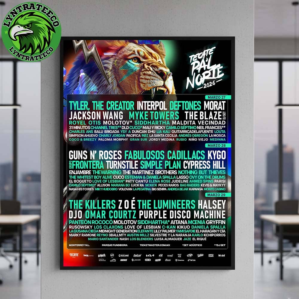 Lyntrateeco: Introducing the Tecate Pal Norte Festival 2026 Poster Lineup Oficial At Parque Fundidora In Nuevo Leon Mexico On March 27-29 2026 Poster Canvas Series
